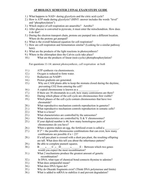 Download biology semester 2 final exam study guide mobipocket